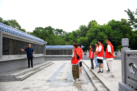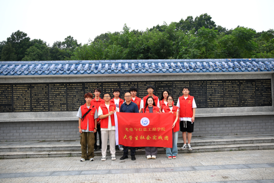 在完成墙绘内容后,邵依娜老师与钱鑫垚老师带领实践队的学生们组成小队前往南河乡凤凰村委会,开展红色教育实践。在这里,学生们参观了革命遗址、红色村庄,学习革命故事,并与当地的红色讲解员进行了深入交流,亲身感受了南河乡凤凰村革命先烈的英勇无畏。